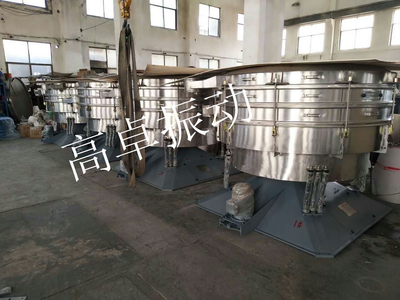 年关将至,我高卓振动筛厂家正在金罗密布的赶制4台圆形振动筛带加一台真空上料机。
